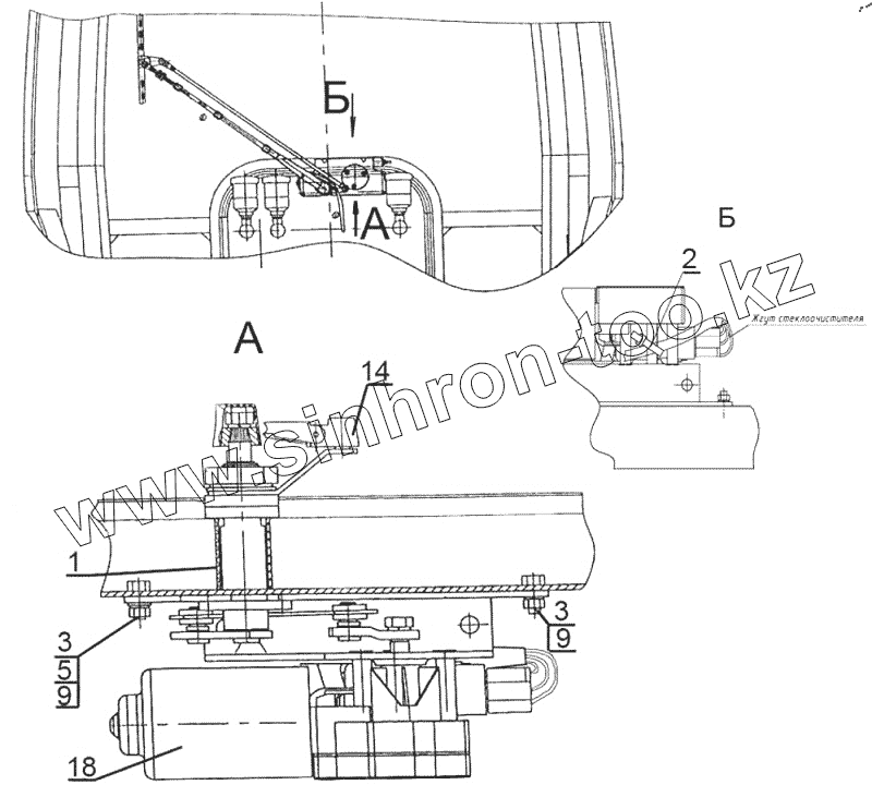 Каталог запасных частей к технике: МТЗ БЕЛАРУС 3525. Установка переднего стеклоочистителя 923-5205010