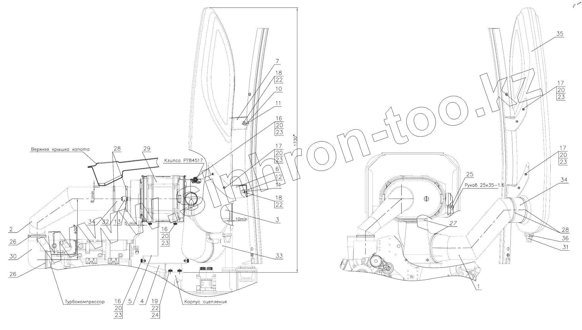 Каталог запасных частей к технике: МТЗ БЕЛАРУС 3525. Установка воздухоочистителя 3022С-1109125