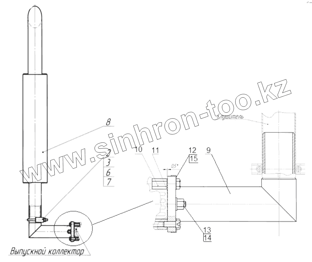 Каталог запасных частей к технике: МТЗ Беларус-422.1. Установка глушителя