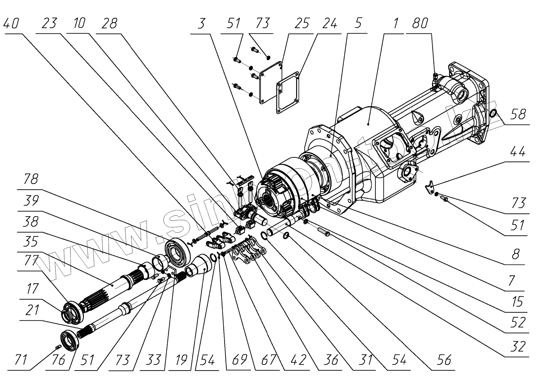 Каталог запасных частей к технике: МТЗ БЕЛАРУС 451. Привод заднего ВОМ