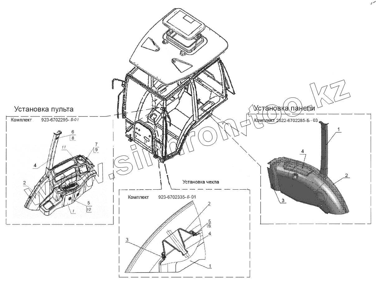 Каталог запасных частей к технике: МТЗ БЕЛАРУС 923.7. Установка панели 2522-6702285-Б