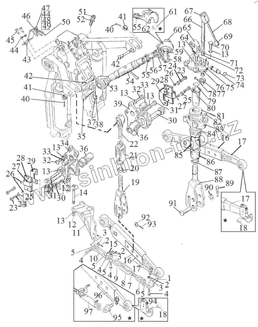 Каталог запасных частей к технике: МТЗ БЕЛАРУС 952.7. Механизм задней навески (с гидроподъемником)