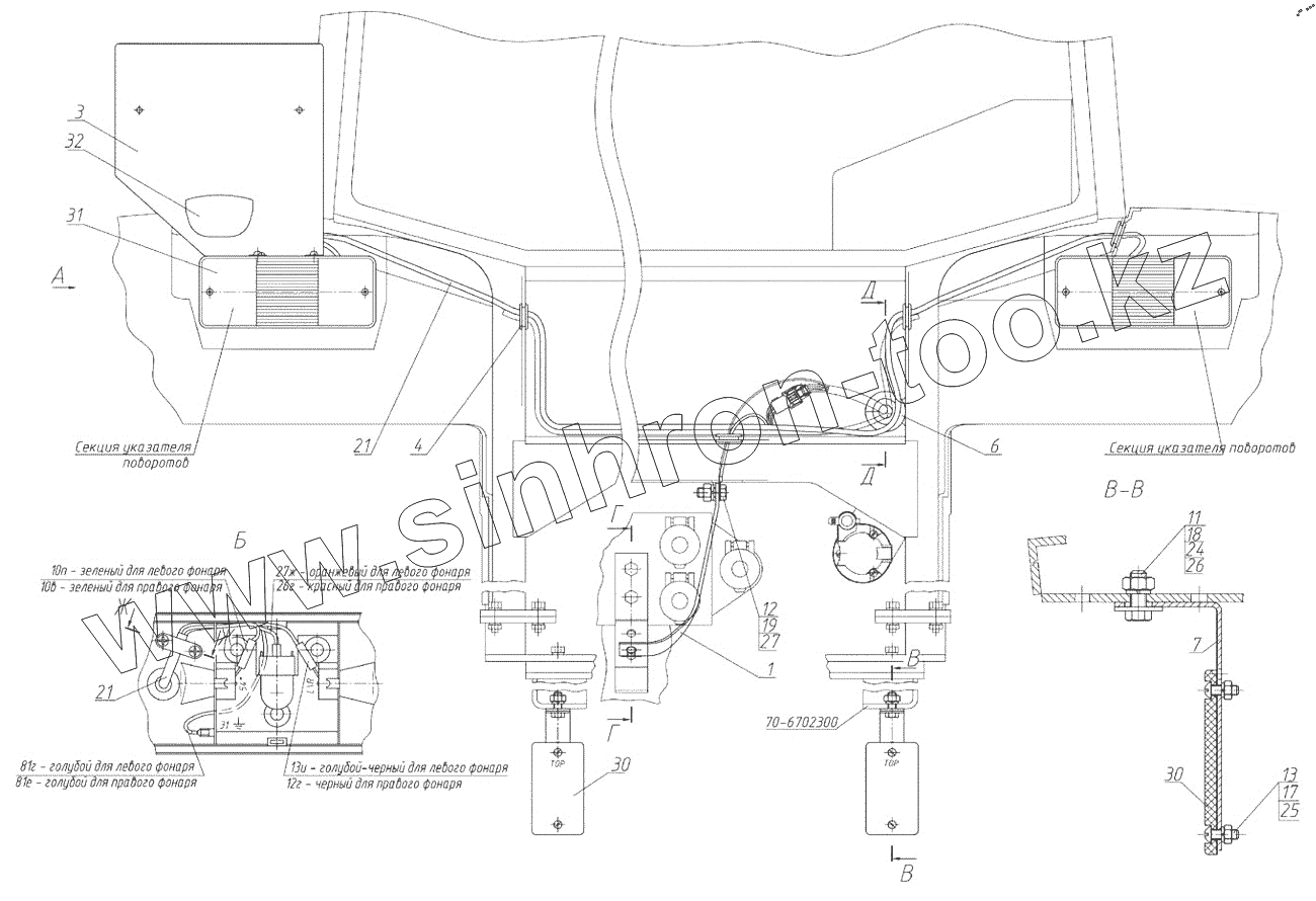 Каталог запасных частей к технике: МТЗ БЕЛАРУС 952.7. Установка фонарей задних 920.6-3700060