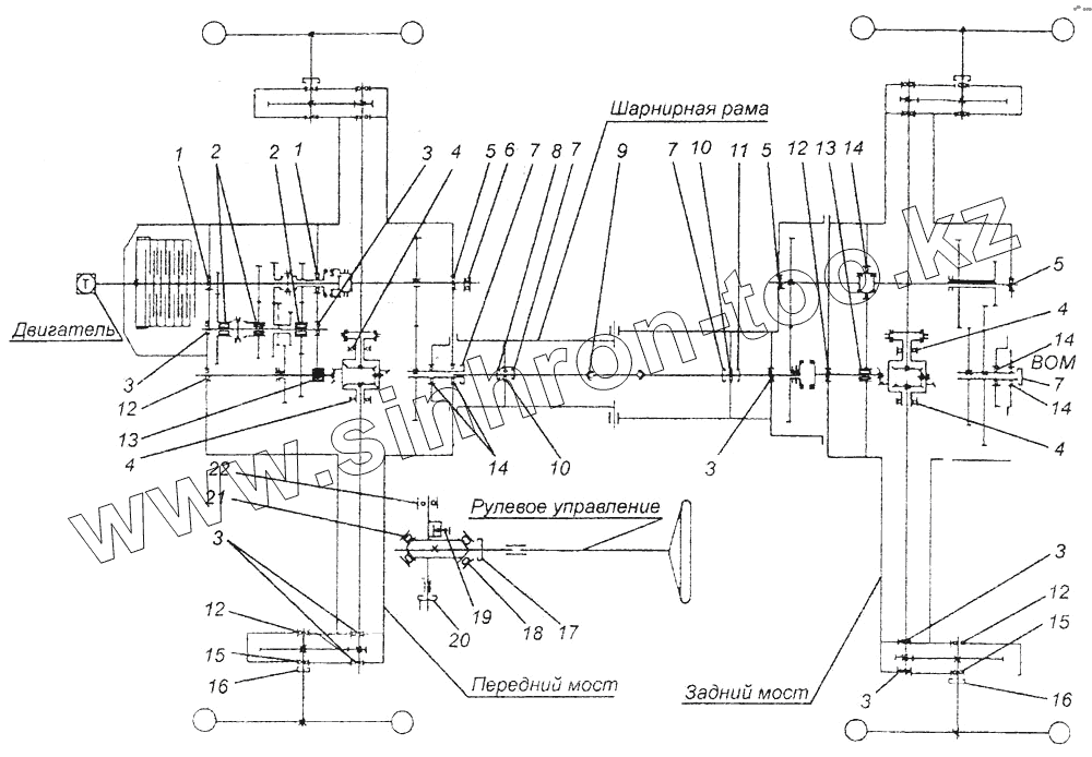 Каталог запасных частей к технике: МТЗ-082. Схема расположения подшипников и манжет