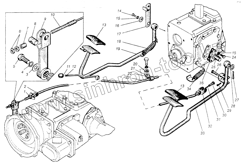 Каталог запасных частей к технике: МТЗ-082. Управление сцеплением 082-1602