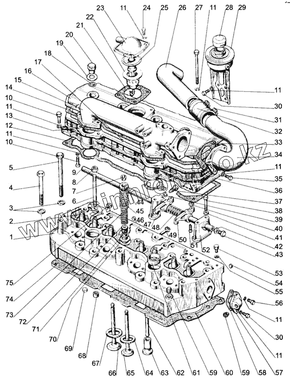 Каталог запасных частей к технике: МТЗ-1005. Головка цилиндров. Клапаны и толкатели клапанов