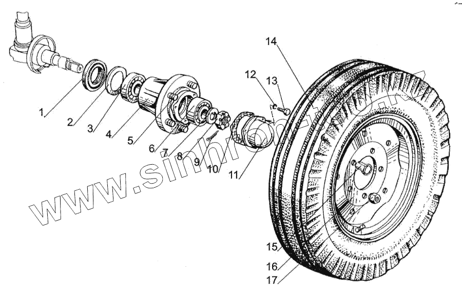 Каталог запасных частей к технике: МТЗ-1005. Колеса передние направляющие. Ступицы передних колес
