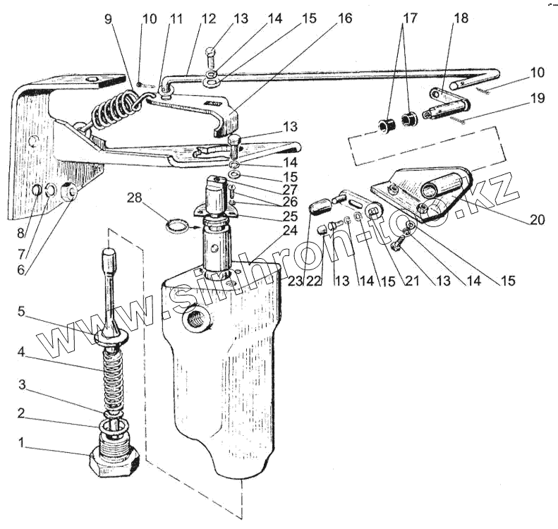 Каталог запасных частей к технике: МТЗ-1005. Кран блокировки. Управление блокировкой дифференциала