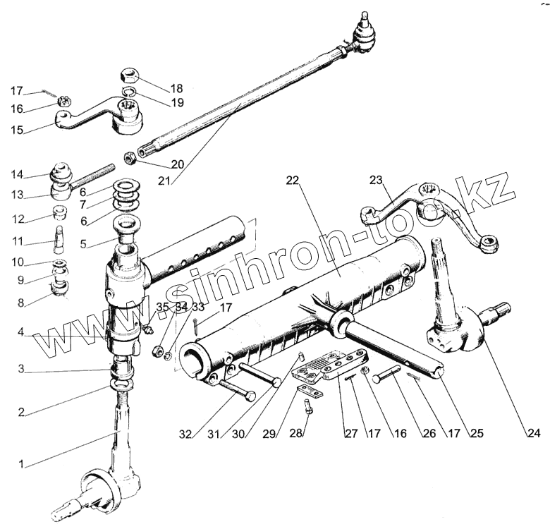 Каталог запасных частей к технике: МТЗ-1005. Передняя ось. Рулевые тяги