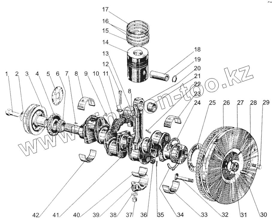 Каталог запасных частей к технике: МТЗ-1005. Поршни и шатуны. Коленчатый вал и маховик