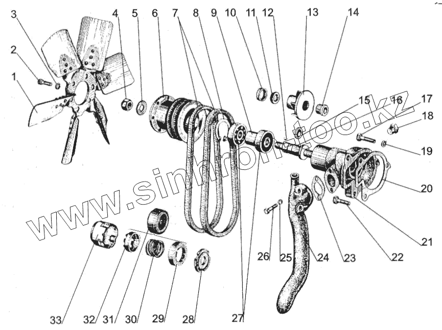 Каталог запасных частей к технике: МТЗ-1005. Водяной насос. Вентилятор