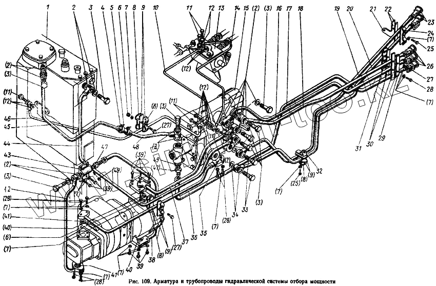 Каталог запасных частей к технике: МТЗ-100. Арматура и трубопроводы гидросистемы отбора мощности