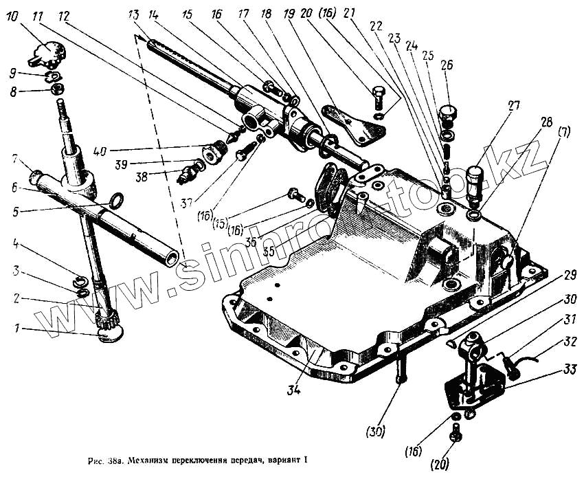 Каталог запасных частей к технике: МТЗ-100. Механизм переключения передач (вариант 1)
