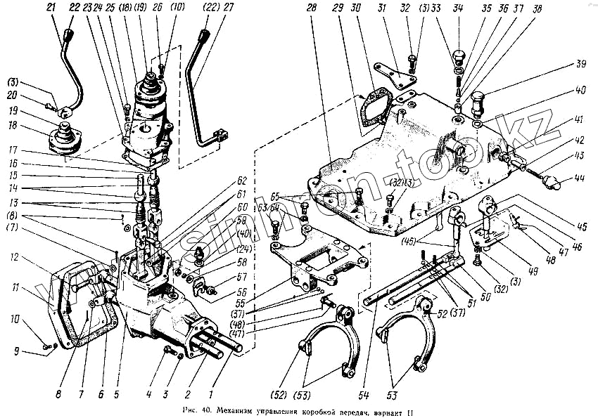 Каталог запасных частей к технике: МТЗ-100. Механизм управления коробкой передач (вариант 2)