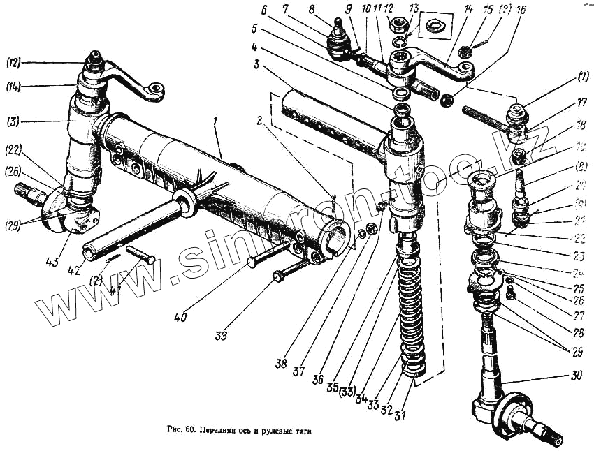 Каталог запасных частей к технике: МТЗ-100. Передняя ось и рулевые тяги