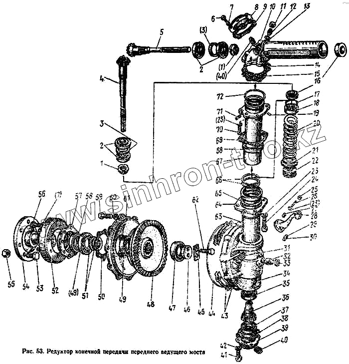 Каталог запасных частей к технике: МТЗ-100. Редуктор конечной передачи переднего ведущего моста