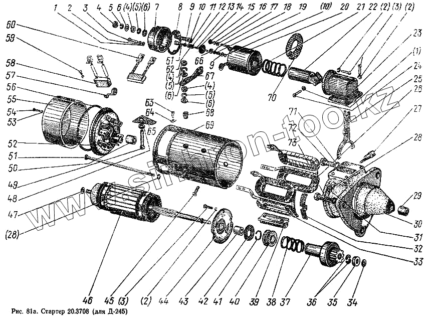 Каталог запасных частей к технике: МТЗ-100. Стартер 20.3708 (Для Д-245)