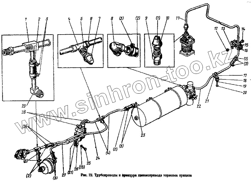 Каталог запасных частей к технике: МТЗ-100. Трубопроводы и арматура пневмопривода тормозов прицепа
