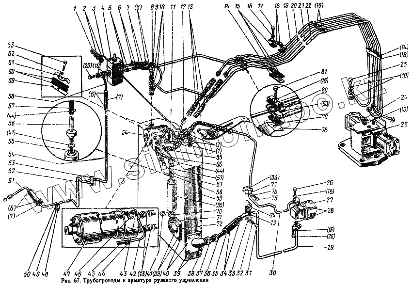 Каталог запасных частей к технике: МТЗ-100. Трубопроводы и арматура рулевого управления