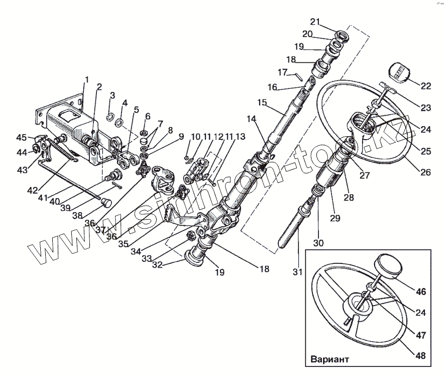 Каталог запасных частей к технике: МТЗ-1021.3. Колонка рулевая