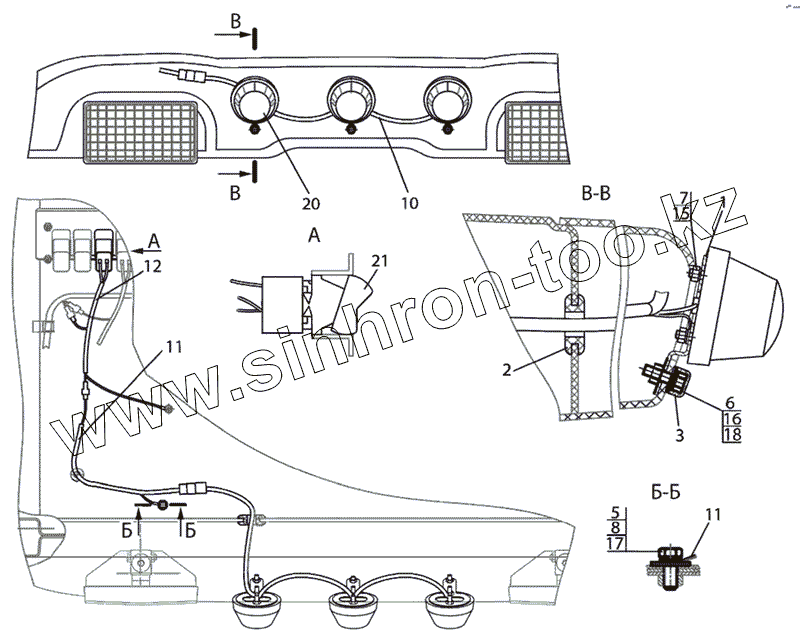 Каталог запасных частей к технике: МТЗ-1021.3. Установка фонарей автопоезда