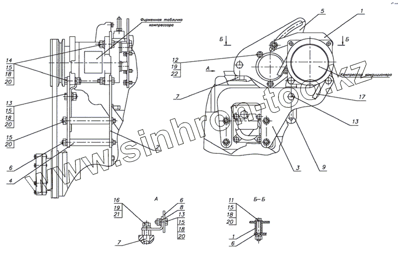 Каталог запасных частей к технике: МТЗ-1021.3. Установка компрессора кондиционера