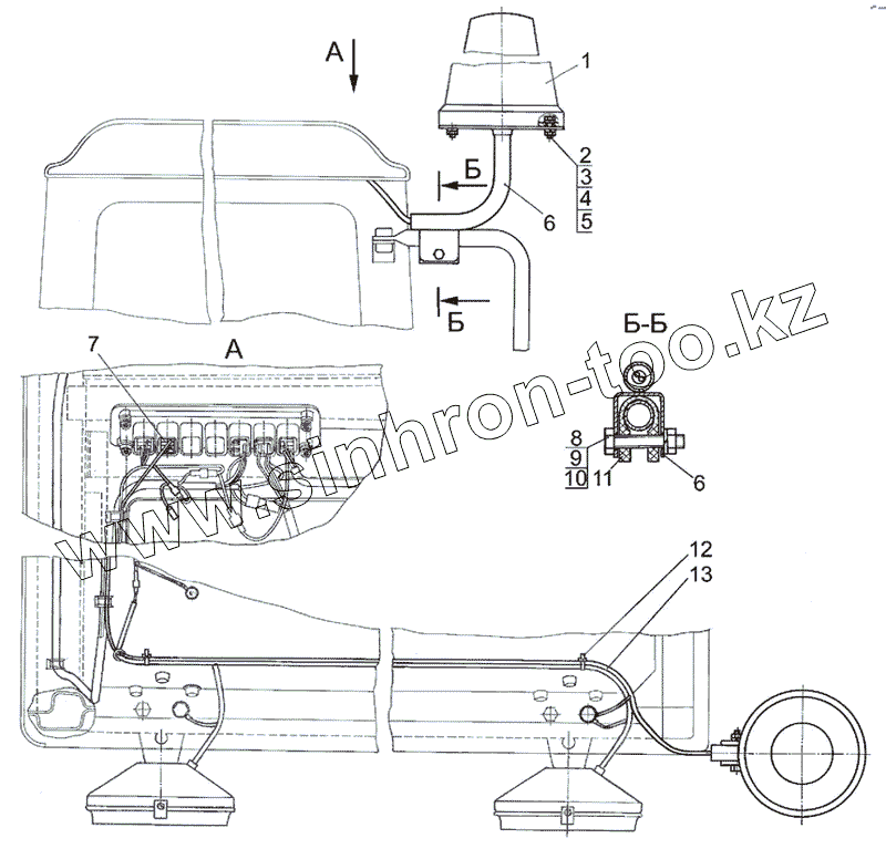 Каталог запасных частей к технике: МТЗ-1021.3. Установка маяка сигнального