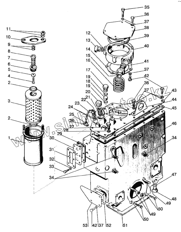 Каталог запасных частей к технике: МТЗ-1025.4. Корпус гидросистемы и фильтр