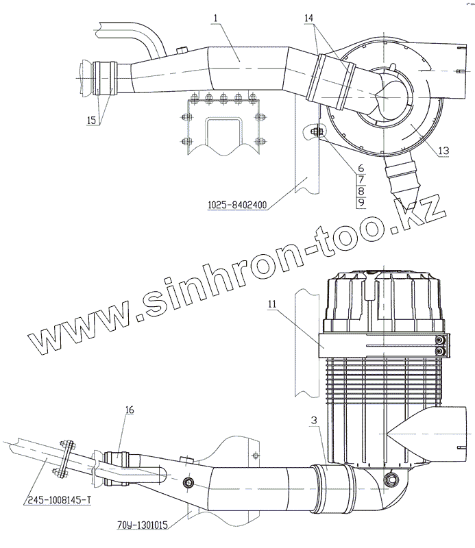 Каталог запасных частей к технике: МТЗ-1025.4. Установка воздухоочистителя
