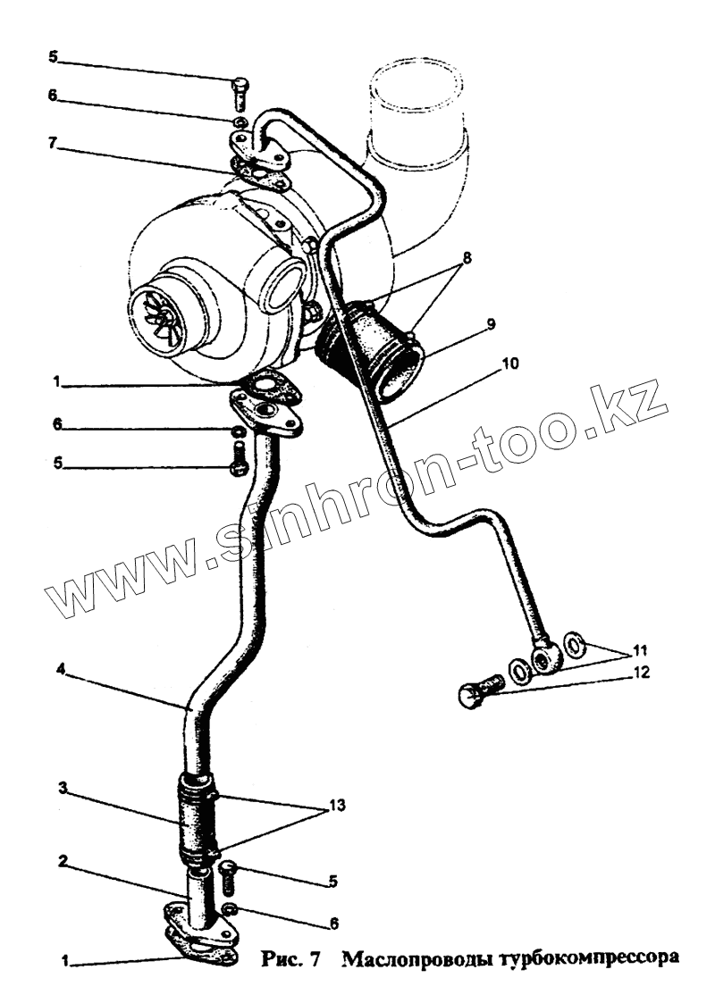 Каталог запасных частей к технике: МТЗ-1221. Маслопроводы турбокомпрессора
