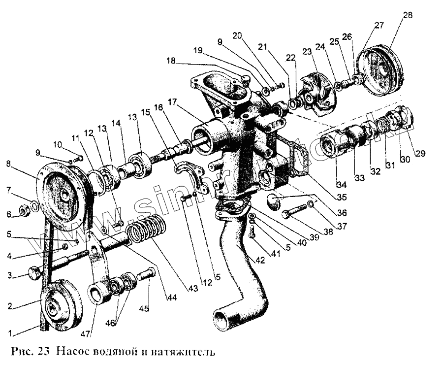 Каталог запасных частей к технике: МТЗ-1221. Насос водяной и натяжитель