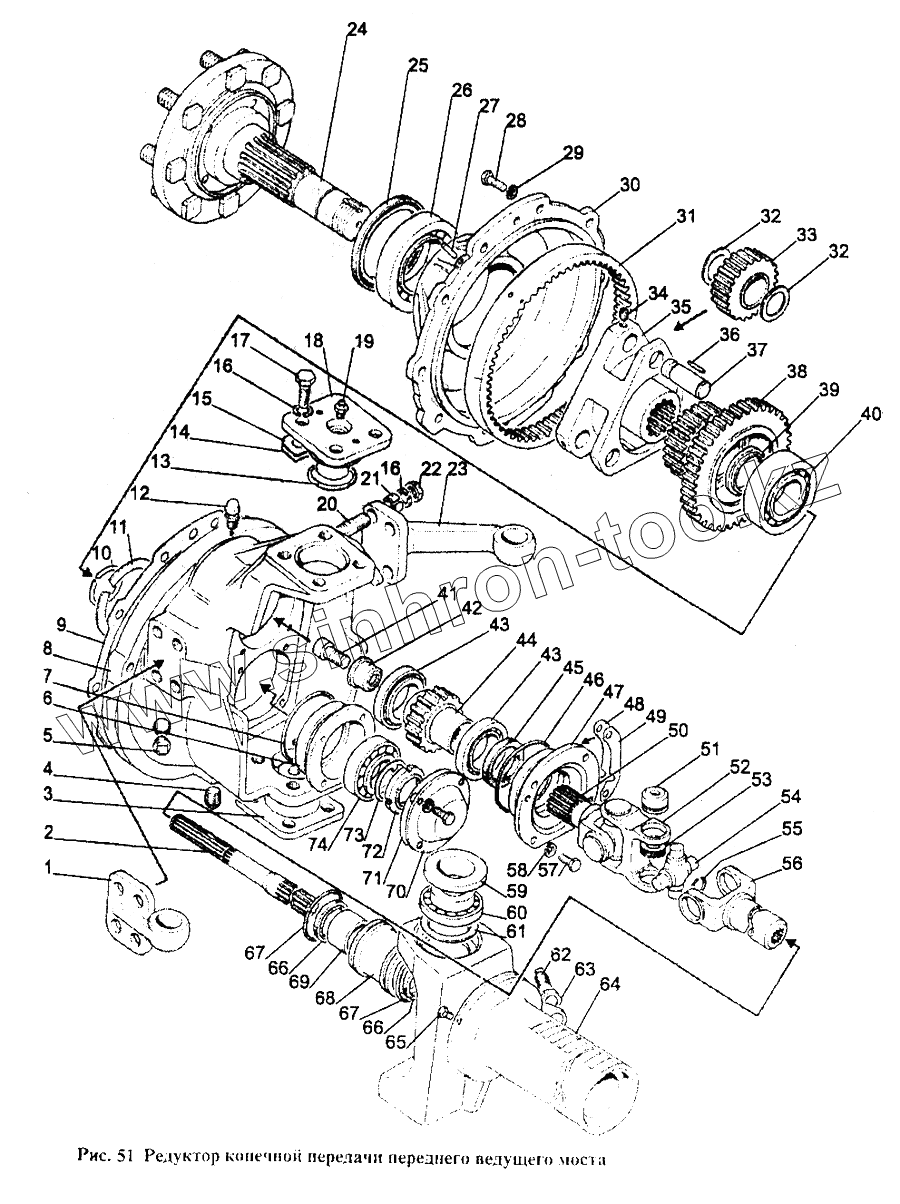 Каталог запасных частей к технике: МТЗ-1221. Редуктор конечной передачи переднего ведущего моста