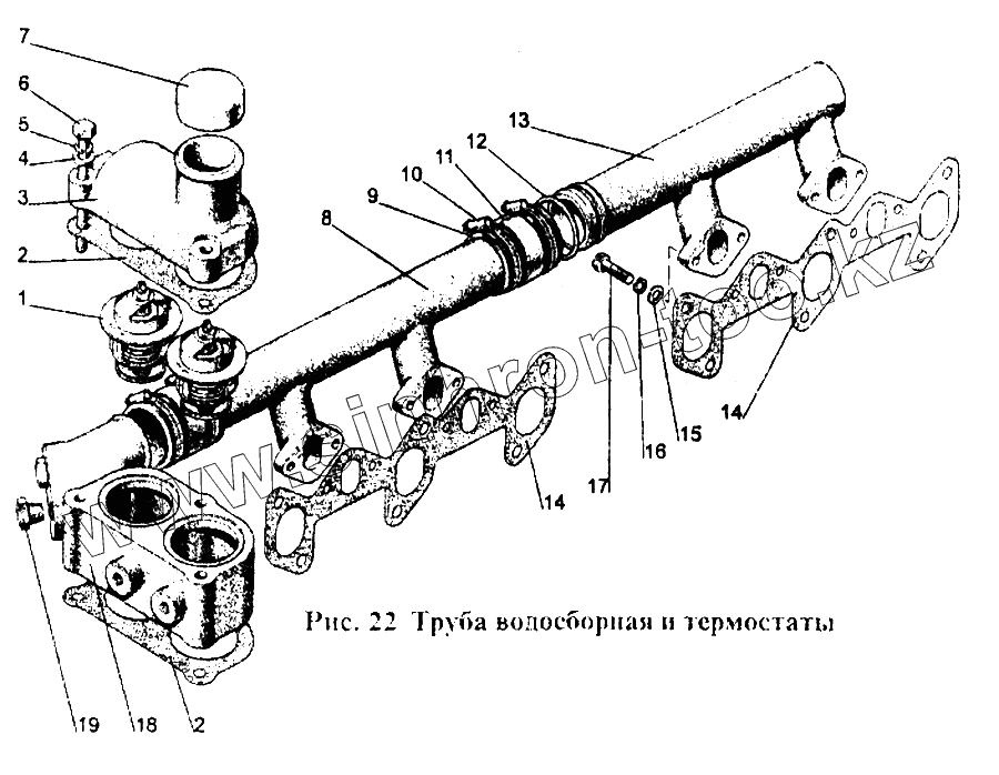 Каталог запасных частей к технике: МТЗ-1221. Труба водосборная и термостаты