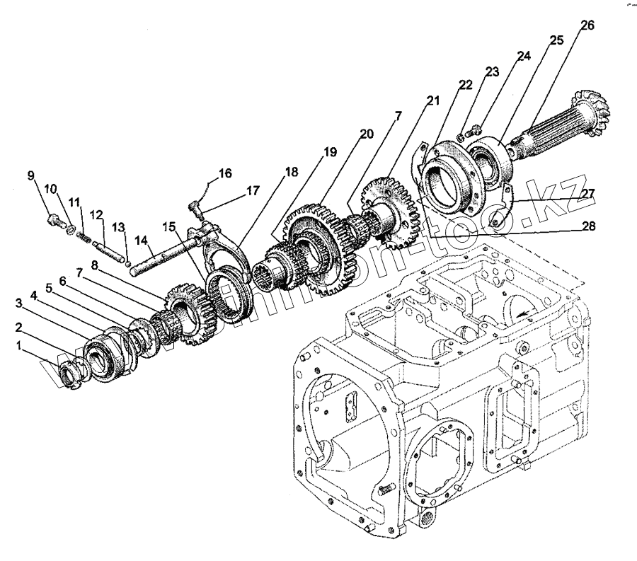 Каталог запасных частей к технике: МТЗ-1221.4. Коробка передач. Вал вторичный