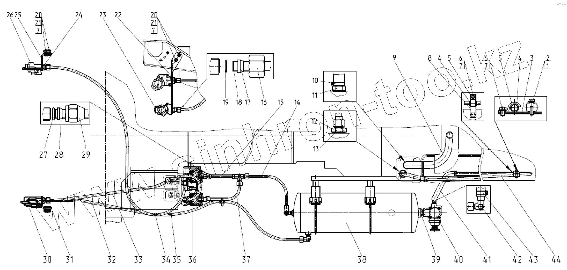 Каталог запасных частей к технике: МТЗ-1221.4. Трубопроводы и арматура пневмопривода тормозов прицепа