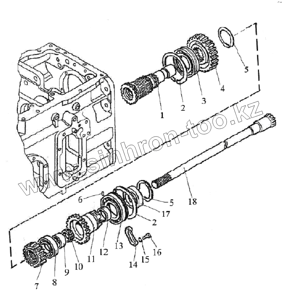 Каталог запасных частей к технике: МТЗ-1221.5. Вал блока шестерен (24F+12R)