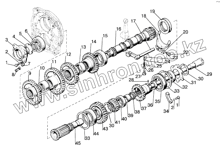 Каталог запасных частей к технике: МТЗ-1221 (2009). Коробка передач. Вал промежуточный