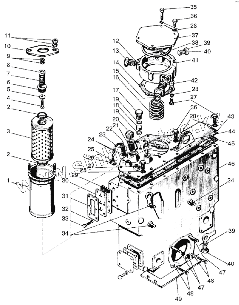 Каталог запасных частей к технике: МТЗ-1221 (2009). Корпус гидросистемы и фильтр