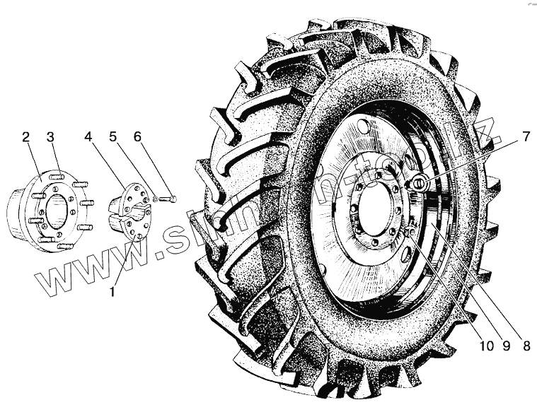Каталог запасных частей к технике: МТЗ-1221 (2009). Ступицы задних колес. Колеса задние ведущие