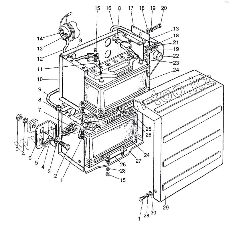 Каталог запасных частей к технике: МТЗ-1222/1523. Установка батарей аккумуляторных
