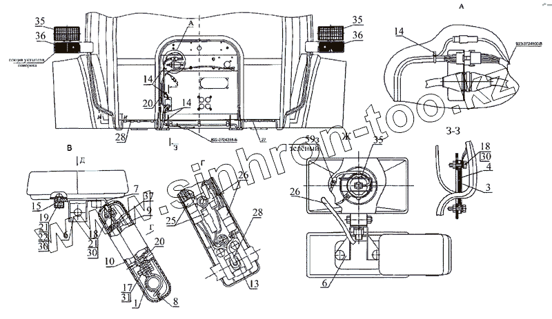 Каталог запасных частей к технике: МТЗ-1222/1523. Установка фонарей передних