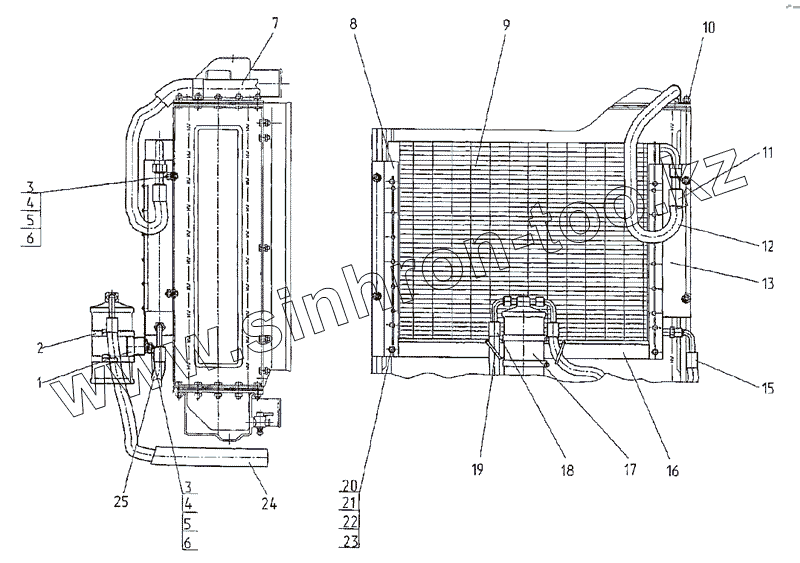 Каталог запасных частей к технике: МТЗ-1222/1523. Установка конденсатора и ресивера