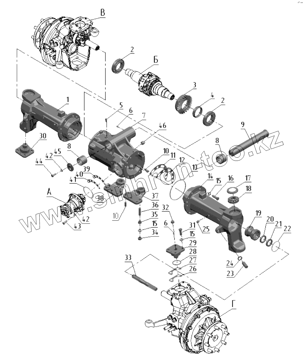 | В | 822-2308005-02 | Редуктор левый конечной передачи переднего ведущего моста | |