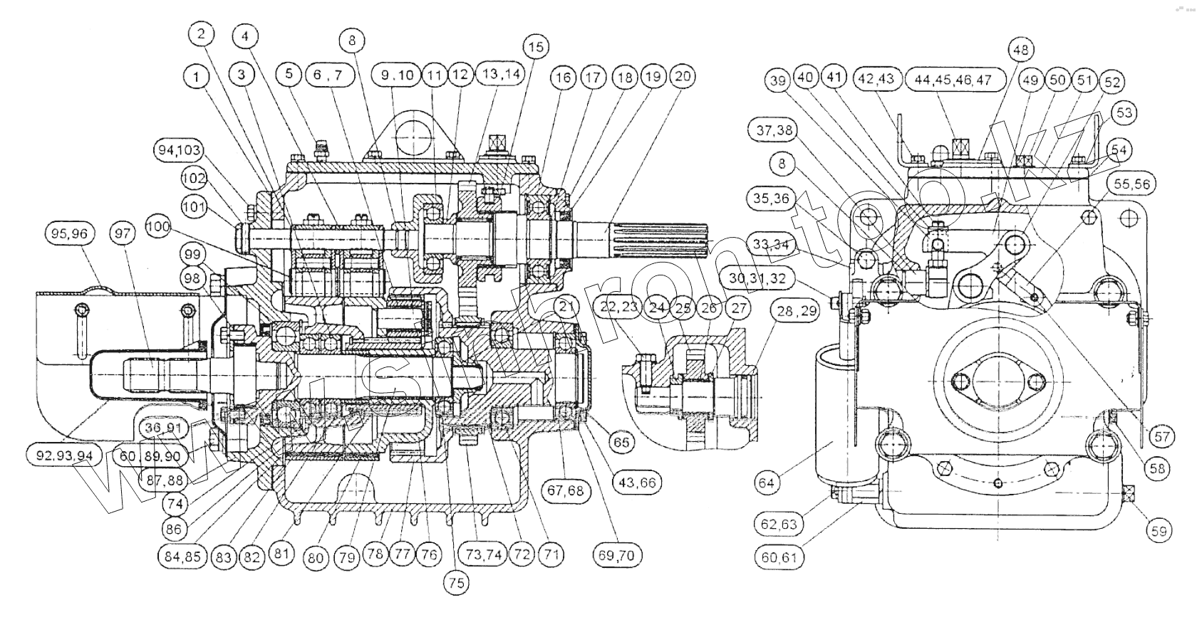 Каталог запасных частей к технике: МТЗ-1523. Редуктор переднего вала отбора мощности