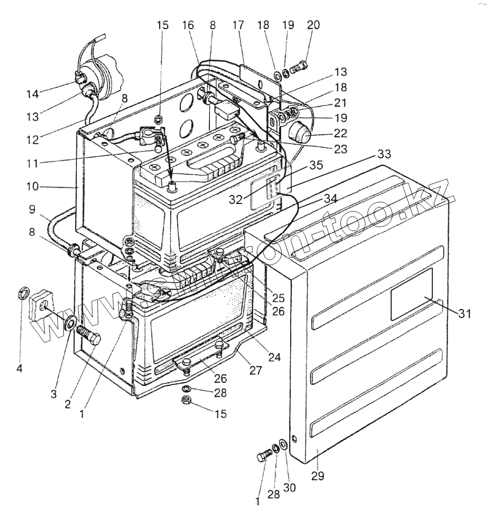 Каталог запасных частей к технике: МТЗ-1523. Установка батарей аккумуляторных