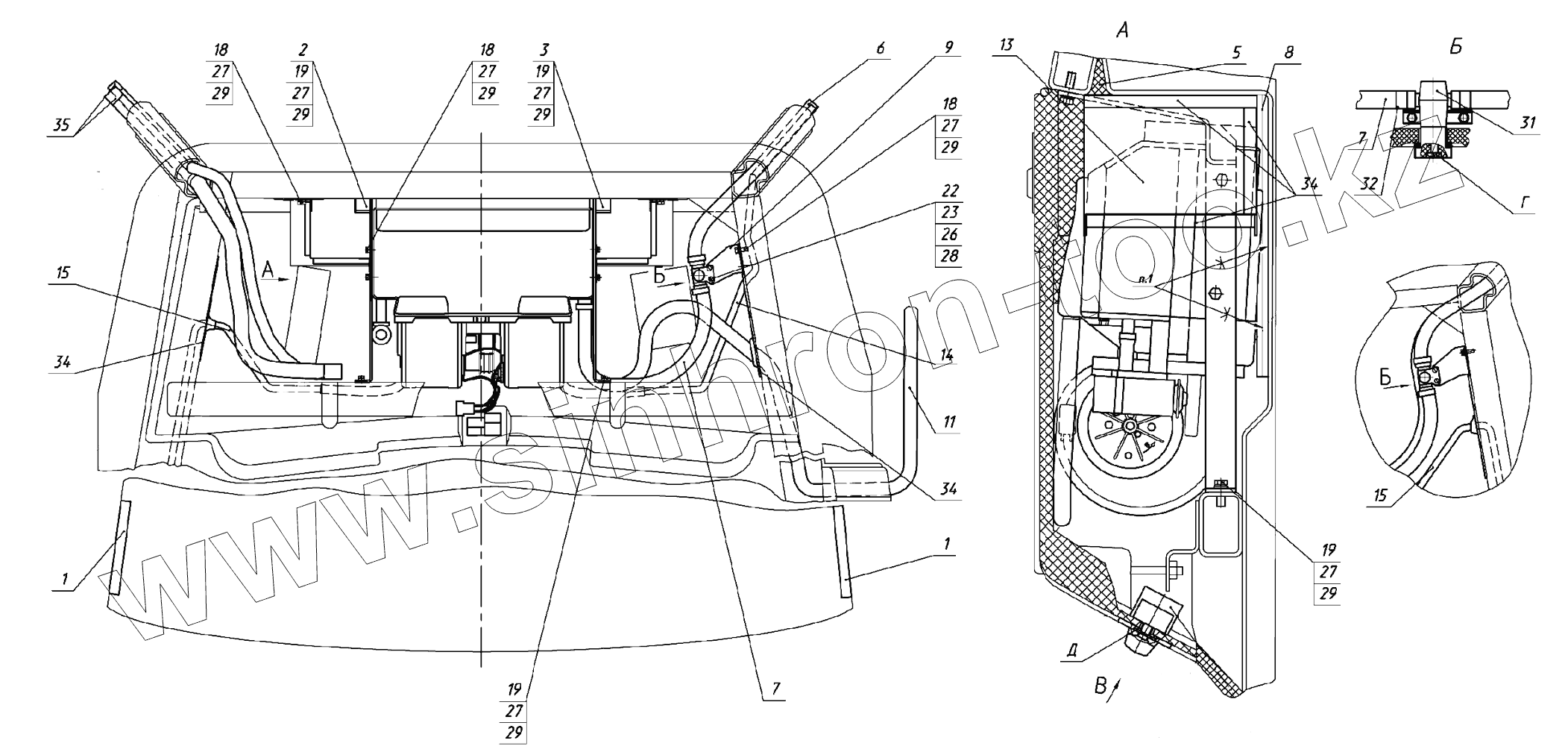 Каталог запасных частей к технике: МТЗ-1523. Установка отопителя-охладителя