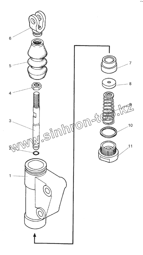 Каталог запасных частей к технике: МТЗ-1523. Цилиндр главный (на реверсе)