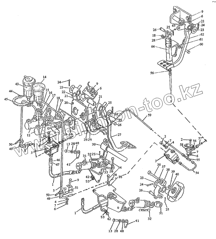 Каталог запасных частей к технике: МТЗ-1523.4. Управление «мокрыми» тормозами (вариант)