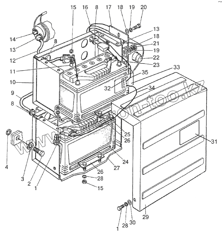Каталог запасных частей к технике: МТЗ-1523.4. Установка батарей аккумуляторных