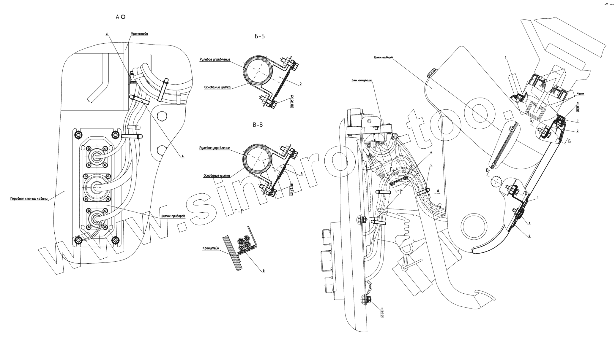 Каталог запасных частей к технике: МТЗ-1523.6. Установка щитка приборов